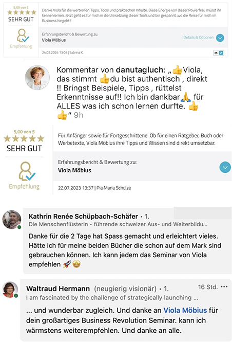 „Liebe Viola, du bist wirklich Gold wert, wenn man sein Business professionell aufbauen möchte! Einfach sensationell – vielen Dank!”