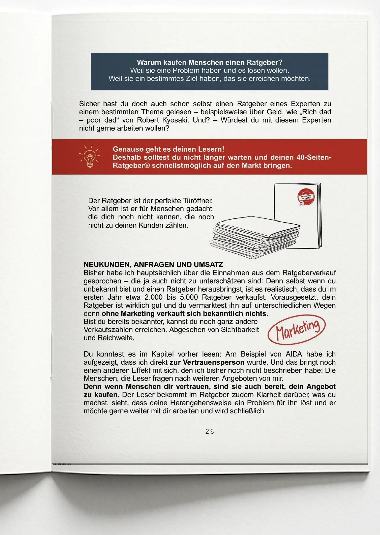Kopiere mein 40-Seiten-Ratgeber®-System, das nicht nur deine Sichtbarkeit steigert, sondern deine Kundengewinnung automatisiert und sofort deinen Cashflow erhöht
