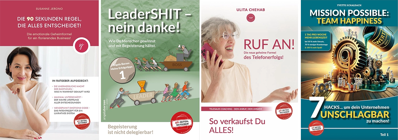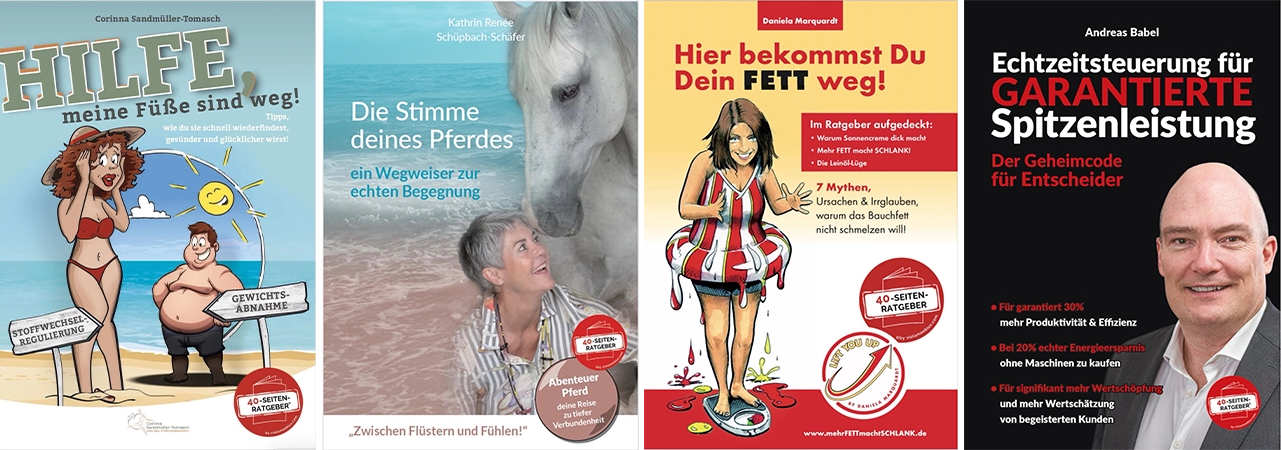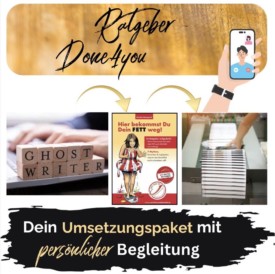 Hier findest du professionelle Rundum-Unterstützung für den erfolgreichen Auftritt deines 40-Seiten-Ratgebers oder deines Buchs auf dem Markt: vom Struktur-Check, über das Korrektorat und Lektorat bis hin zum Ghostwriting und einem verkaufsstarken Cover. All diese Schritte, die ich schon über 20 Mal gegangen bin. Und mit meiner jahrelangen Erfahrung habe ich hier ein wunderbares Expertenteam zusammengestellt, das dir Profi-Unterstützung für alle Belange rund um dein Buch oder deinen 40-Seiten-Ratgeber® bietet, sodass du der Welt dein Werk präsentieren kannst!