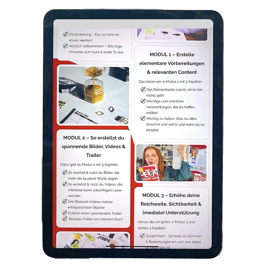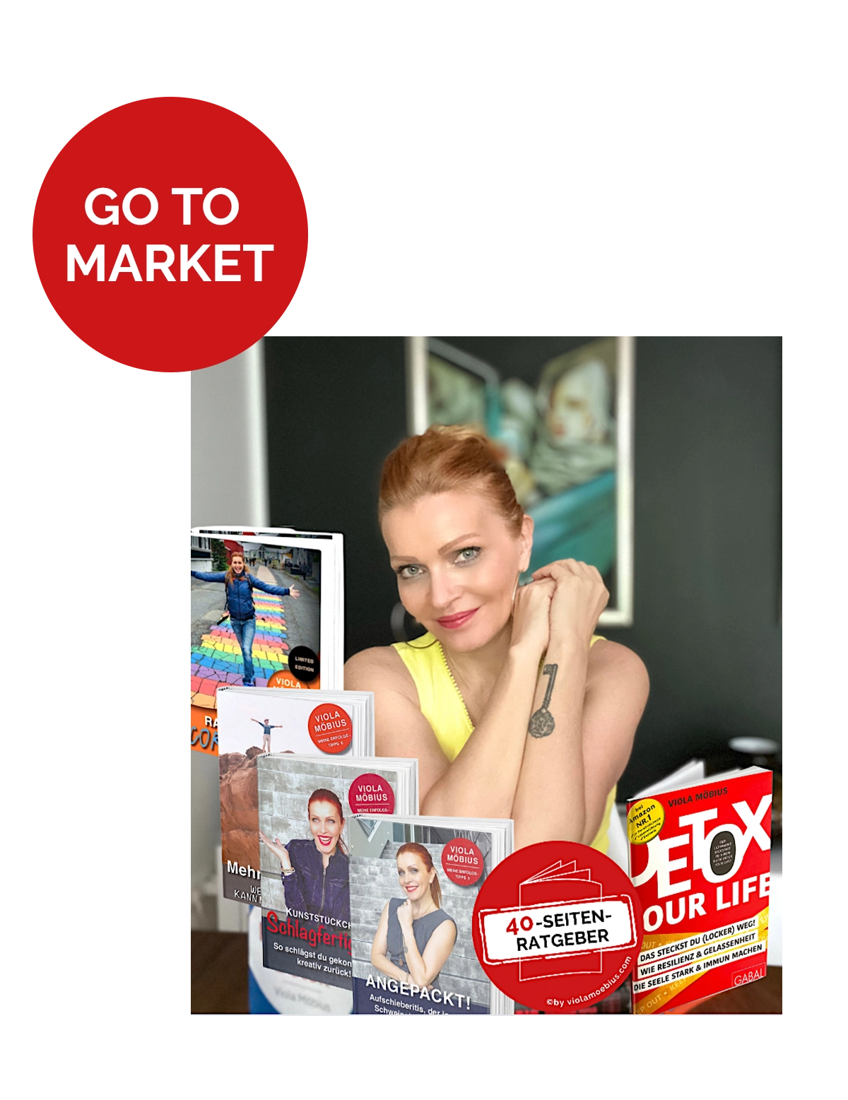 - Go to Market: So wird dein 40-Seiten-Ratgeber® ready für den Launch und den Markt – und damit startklar, von möglichst vielen Menschen entdeckt und gekauft zu werden.