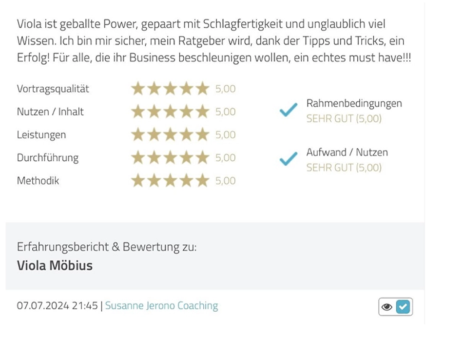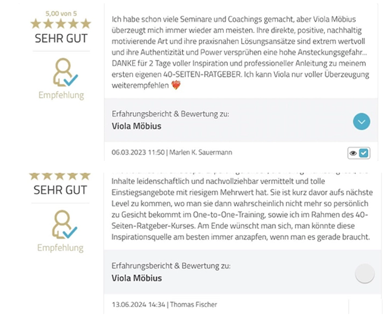 - Setze auf ein Team aus erfahrenen Experten, mit denen Viola Möbius seit langem erfolgreich zusammenarbeitet, sowie auf Tipps und Strategien der 22-fachen-Buchautorin, die mehrfach Bestsellerstatus auf Amazon erreicht hat