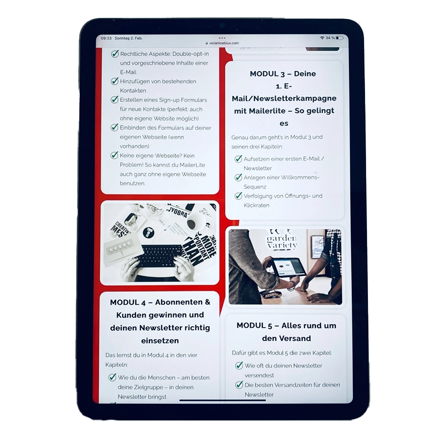 Wie du deinen Newsletter-Anbieter einrichtest, deinen Newsletter erstellst & verschickst, Kontakte zu Abonnenten machst, Kunden bindest und Verkäufe steigerst. Mit diesem Video-Kurs startest du deinen eigenen Newsletter, machst Schluss mit unsortierten, ungenutzen Kunden – für mehr Kundenbindung & Verkauf.