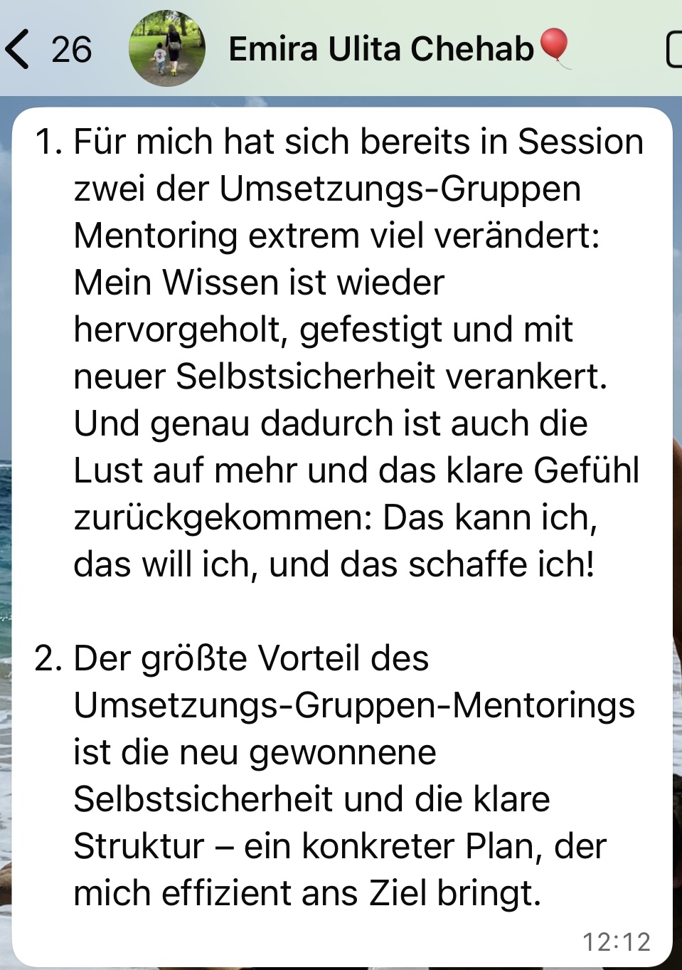 Das persönliche Umsetzungs-Gruppen-Mentoring, das aus „Ich weiß nicht, wo ich anfangen soll“ → „Ich komme endlich voran“ macht.