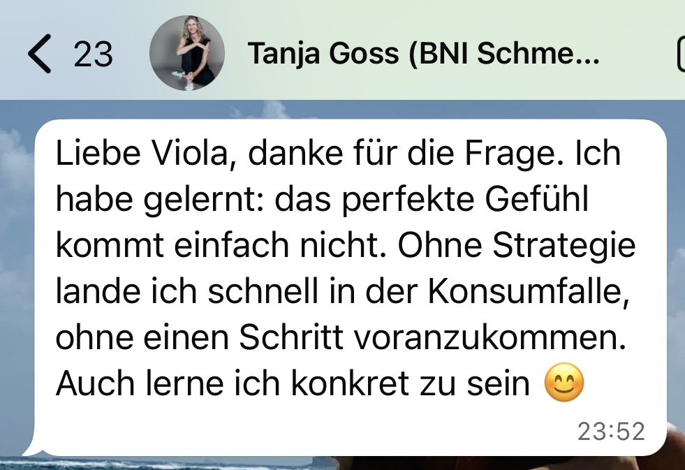 Das ist kein Coaching oder Kurs. Hier geht es um ein wertvolles Programm mit stetiger persönlicher Umsetzungs-Begleitung, Learnings und Feedback.