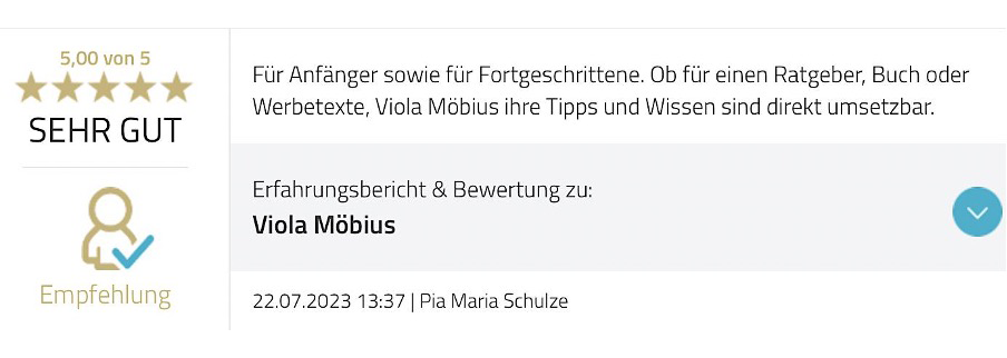 Allein meine Buchverträge – auch mit dem größten Verlag der Welt – habe ich über verkaufsstarke Produkt- und Angebotstexte bekommen, denn live gesehen hat mich niemand, und die Konkurrenz ist groß. Meine (Produkt- und Angebots-)Texte haben schlichtweg überzeugt, sind herausgestochen und haben zum Kauf (Vertrag) geführt.
