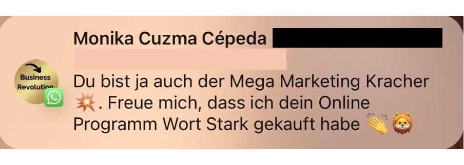 Danke für diesen unfassbar guten Kurs! Da sind so viele tolle Vorschläge und Formulierungen drin, auf die würde ich selbst gar nicht kommen.